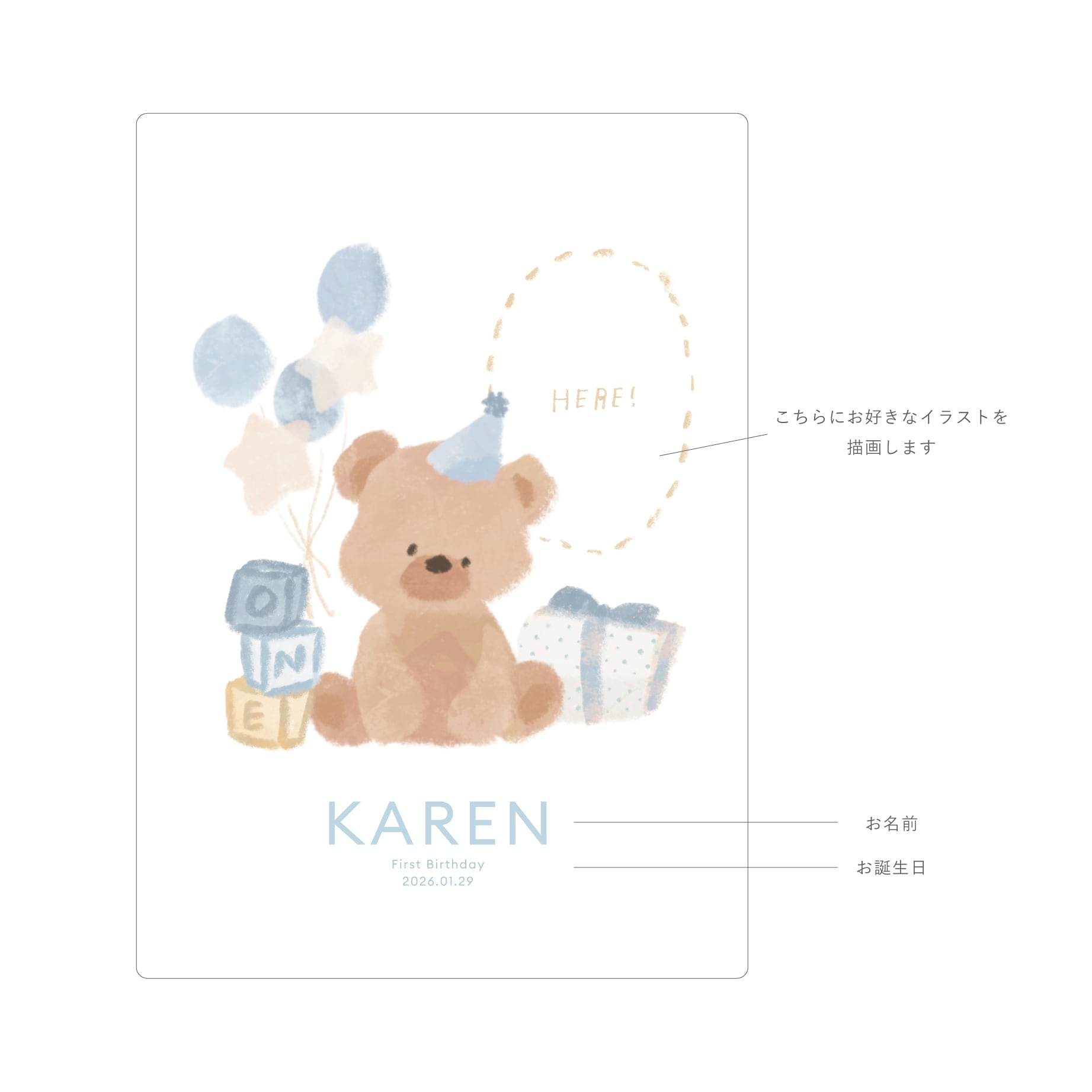 お名前とお誕生日の入った、世界にひとつだけのプレゼントが仕上がります。
