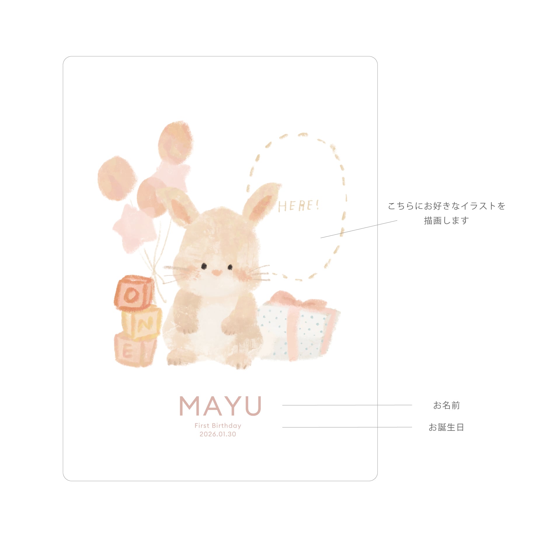 うさぎさんを中心としたイラストの右上にご希望のイラストをお描きします。